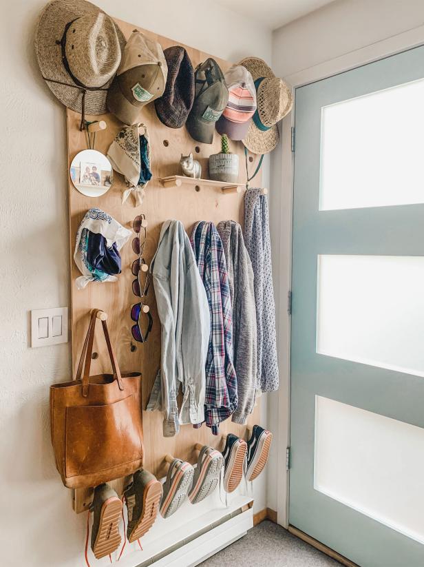 - Organize your entryway: Use a pegboard to store jackets, hats, and bags in your entryway. This will help keep the space tidy and functional, and make it easier to grab your things on the way out the door.
