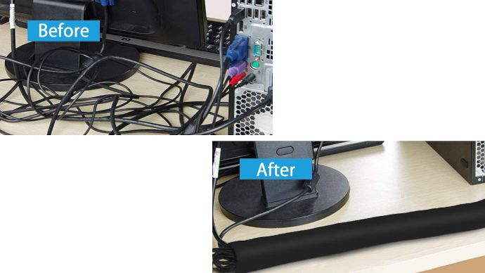 A few of these cable management sleeves are all you need to bundle your cables and cords in a more aesthetically pleasing way. Say goodbye to cable clumps that look like snake pits and say hello to a sleeker, cleaner space.
