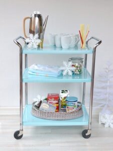 Don’t do booze? Create a rolling coffee or tea station instead, and stay just as organized while adding some extra pizzazz to your next coffee morning.