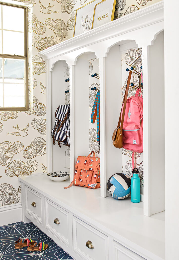 An area to hang coats, backpacks and hats for the kids is essential and a seating area is ideal. For parents, ensuring that there is a set area for belongings like your purse and wallet, smart phone chargers and keys storage can help you keep everything in one spot without hunting for them when time is of the essence. Try to get in the habit of having your kids place belongings here at night so their morning routine is less stressful.