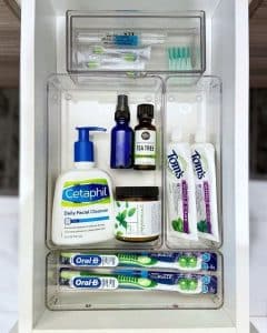 Bathroom drawers quickly become jumbled messes of makeup, jewelry, and grooming tools.