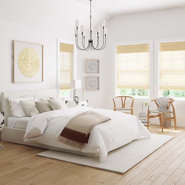 Granted, this is more of an organization and cleanliness tip, but don’t let that belie its importance: A cluttered bedroom never looks luxurious, so keep the floor clean and orderly—that means no stacks of books and piles of extension cords, either.