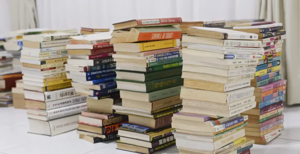 - Keep the “Keep” pile neatly arranged, ready for its new home in your reading nook.