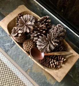 Natural elements bring the feel of fall into your home without the kitsch. Wooden bowls filled with pinecones or a wicker basket with faux autumnal foliage can serve as beautiful centerpieces that don’t scream clutter. Even a vase filled with branches of fall foliage can be a minimalist yet seasonal addition to your decor.