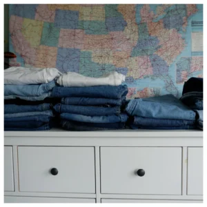 We’ve all been there – keeping jeans in multiple sizes, holding onto pairs that require specific shoes or shapewear to work, maintaining “someday” sizes that make us feel guilty every time we see them.