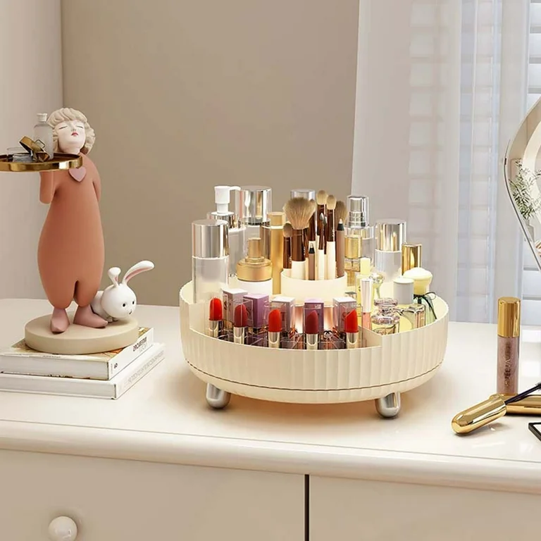 A rotating organizer keeps your everyday items accessible while maximizing counter space.