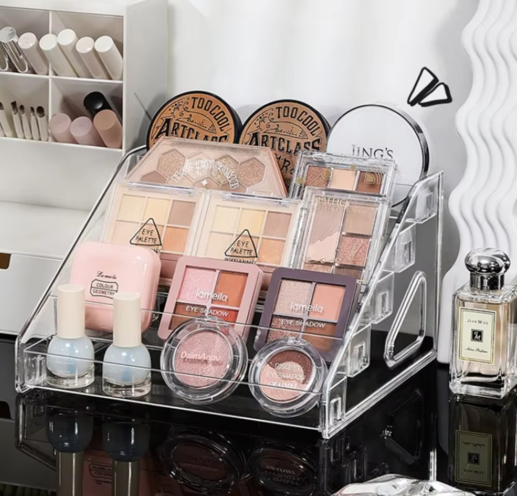 Clear acrylic organizers allow you to see all your products at a glance, making it easier to find what you need quickly.