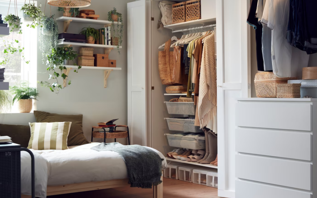Although this is a very effective method for organizing a small bedroom, keep in mind that when there isn’t much space, zones will unavoidably overlap. To prevent confusion, put similar items in containers or baskets so they may be stored anywhere in the space and then quickly moved as needed.