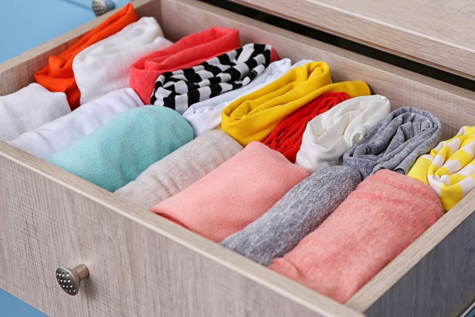 To maximize shelf space, use stackable containers, baskets, and closet organizers. Set aside shelf space for bulkier things like jumpers and chunky knitwear and file fold (where folded items are placed vertically) t-shirts, jumpers, and jeans into individual boxes.