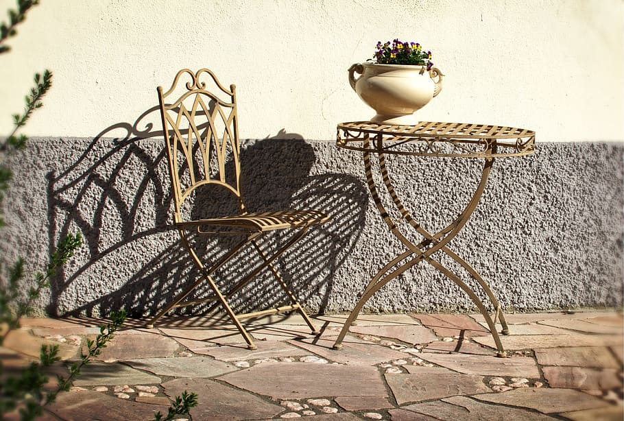 One of the best seating and dining solutions for a small patio is a bistro set which is a space saver while still being a very practical way to dine. Choosing a wrought iron version means you will be making a very durable choice, and although they may cost a little more than plastic furniture upfront the investment tends to pay off in the long run, and look a lot nicer as well.