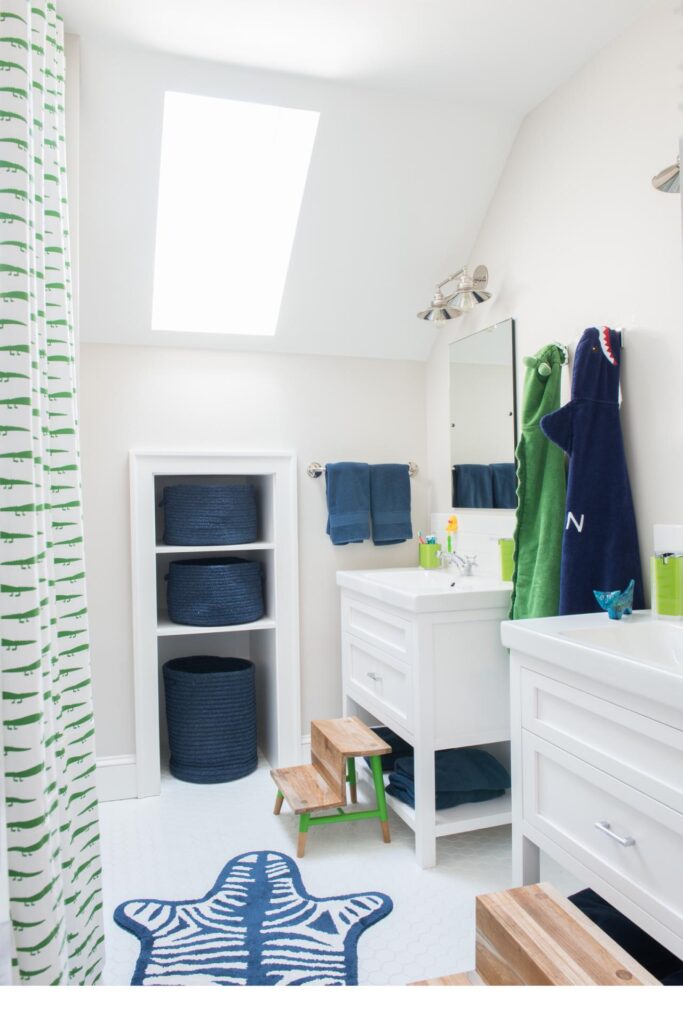 The key to a kid-friendly bathroom is accessible and engaging storage. Here are some solutions that work: