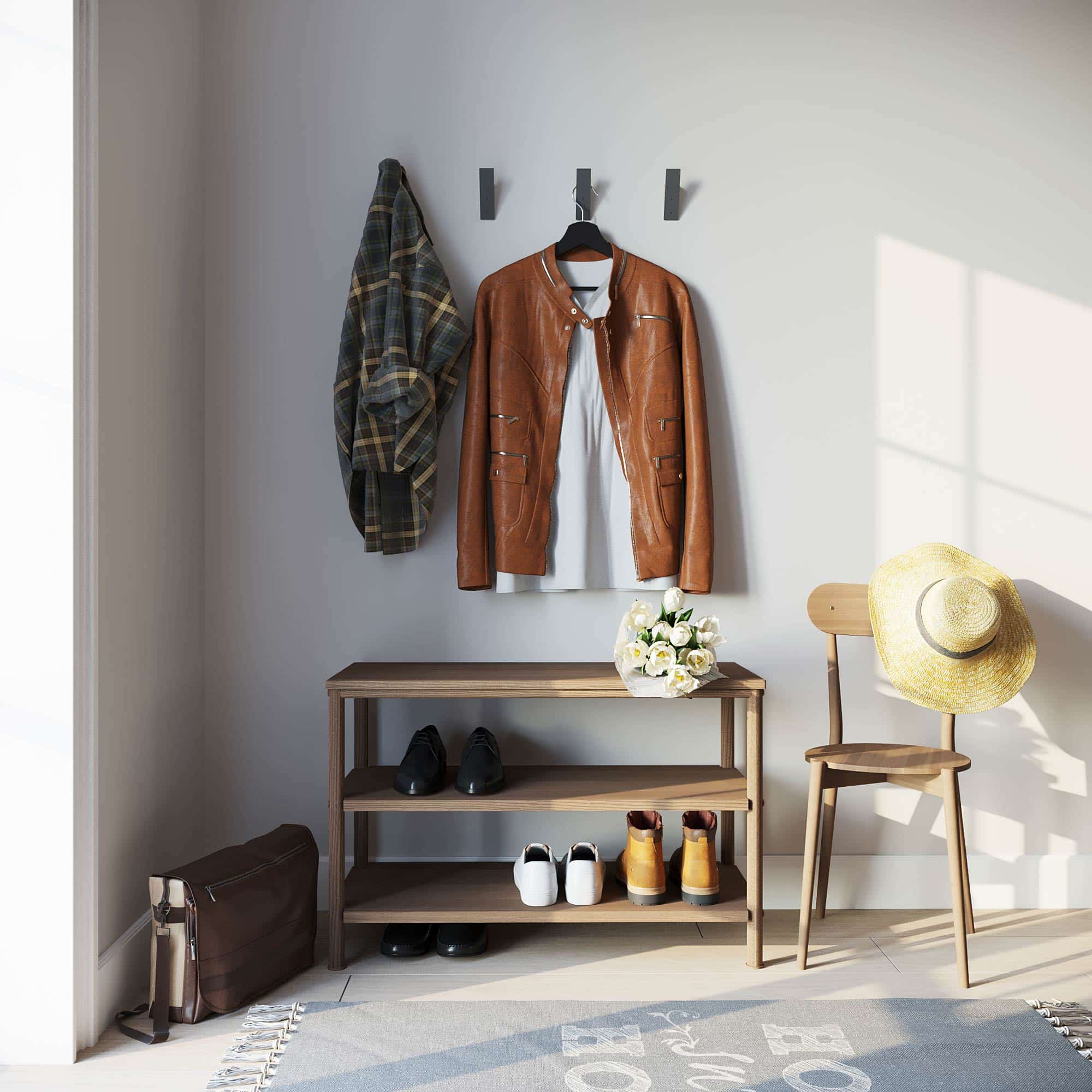 For tight spaces, try staggering hooks at different heights to maximize vertical storage while preventing items from tangling. And don’t forget the back of the door – this often-overlooked spot can hold seasonal items like winter coats in colder months and beach towels in summer. A few well-placed hooks can transform even the smallest entryway into an organized landing zone that keeps daily essentials within easy reach.