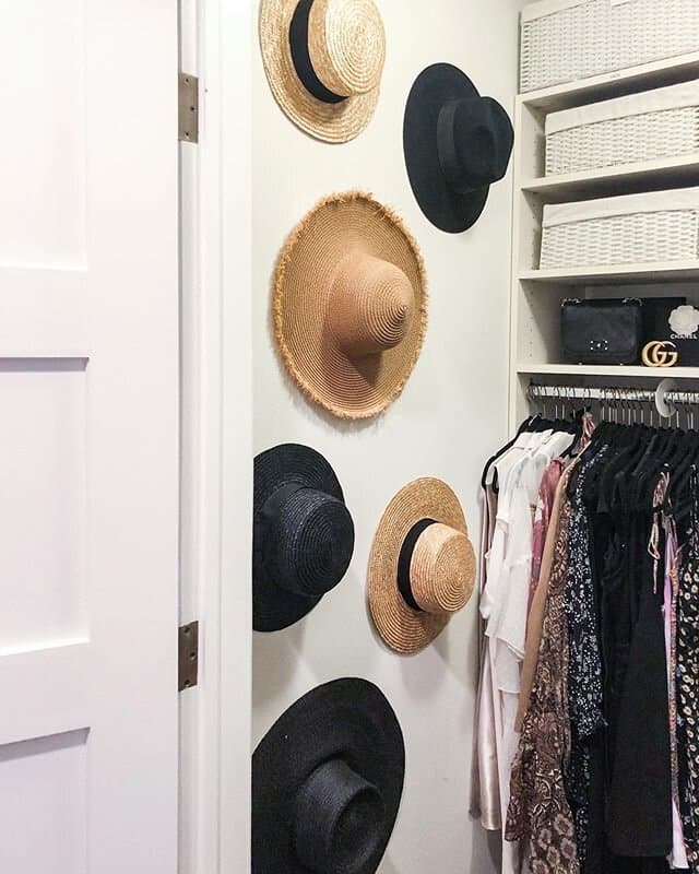If you are a hat person (even bobble hats) hooks are a must too. Storing hats so that they don’t get smushed is super important! Hanging them rather than stacking them is the best bet for preserving your beautiful brimmed hats for as long as possible!