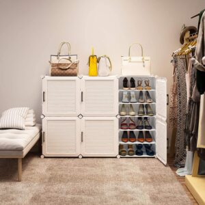 A closed shoe rack is more like a shoe shelf. It offers cubbies or contained sections for each pair.