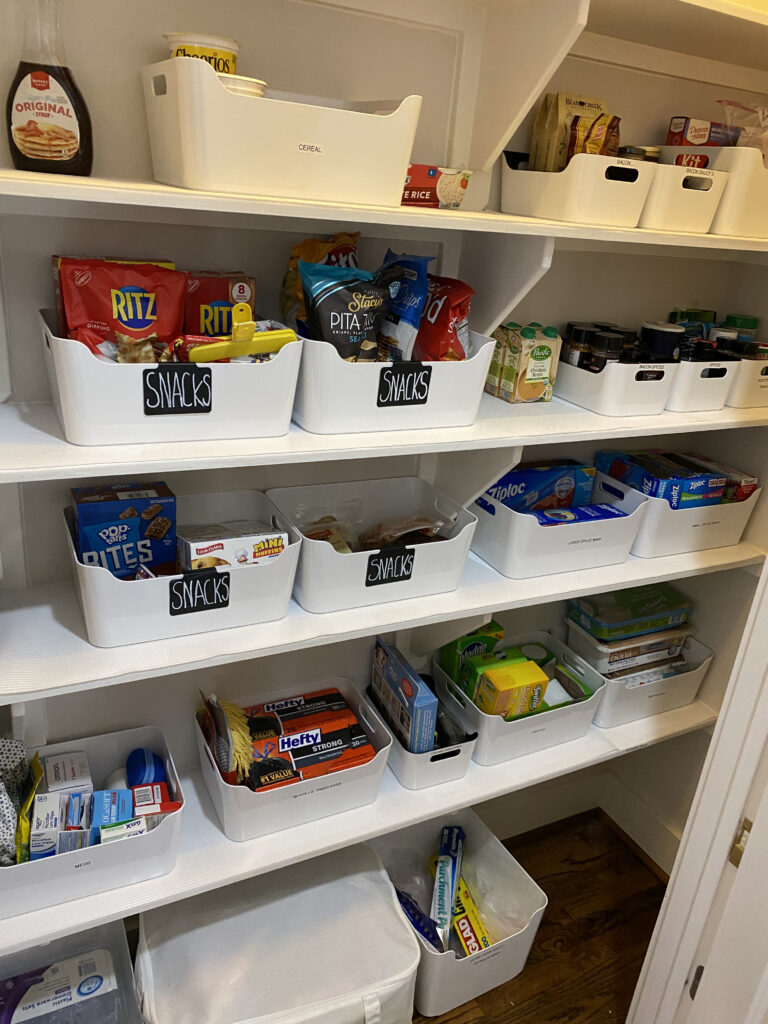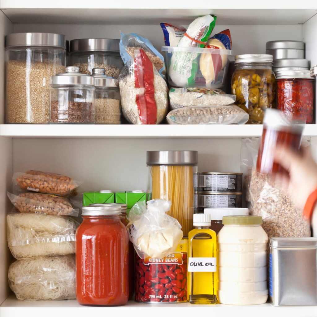 Group similar items together based on their type (canned goods, baking ingredients, snacks, etc.) or usage (breakfast items, baking, quick meals, etc.). Create designated areas for each category in your pantry.