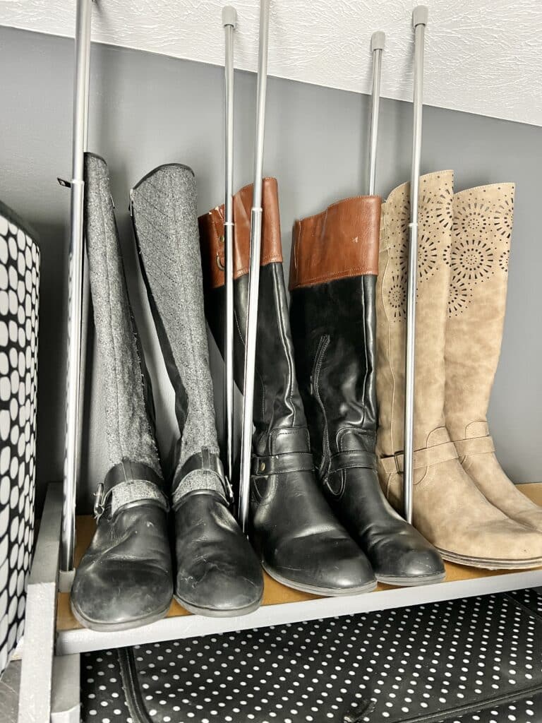 - Closet Shoe Rack: Secure a tension rod near the bottom of your closet to create an instant shoe or boot rack.