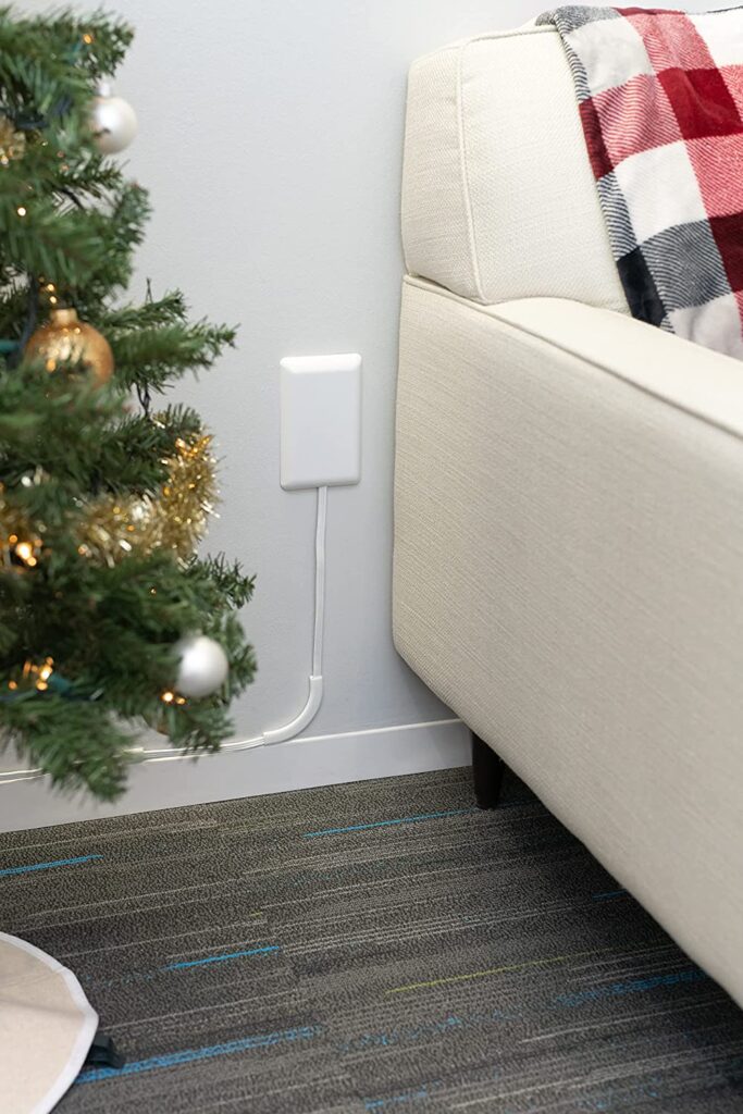 A great addition to living rooms and bedrooms, this sleek, stylish socket cover has an extension cable and a power strip with several power points and USB ports. This cover, which is available in a range of lengths and port counts, not only makes electrical outlets appear more understated, but it also makes using an outlet behind furniture simpler. With the help of the extension cord, you can plug in this cover behind a sofa and still make asy use of its extension cord.