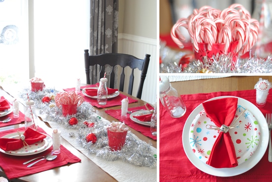 Tinsel is a familiar element of Christmas decor, but it might not be expected to make an appearance on your holiday table. Arrange long strands of tinsel down the center of the table to make a runner, then top it with a traditional centerpiece — or more decorations.